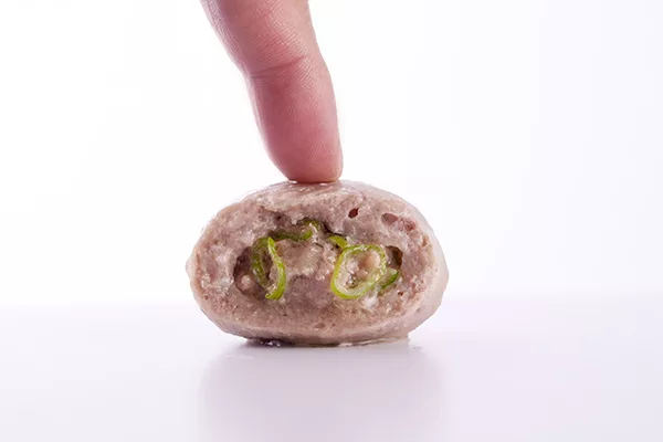 全國第一家產銷履歷貢丸,採用宜蘭三星蔥特製湯包肉餡搭配Q彈多汁的貢丸外皮,如爆漿般噴出,香味四溢。台北雞煲蟹